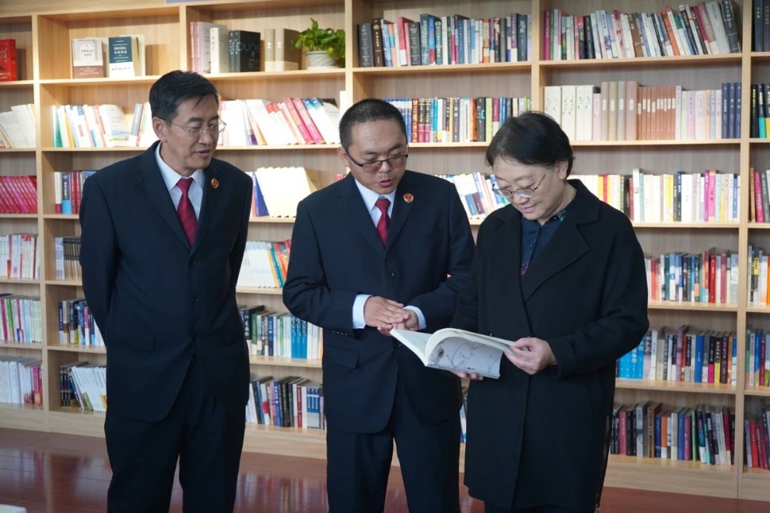 郭文秀检察长接见了自治区法学会调研组,并对两个基地的工作情况进行了简要介绍。调研组一行先后参观了市检察院检阅时光书屋、民族团结进步展厅、院史馆及研究基地,详细了解基地建设与运行情况。随后,在检委会会议室举行座谈。