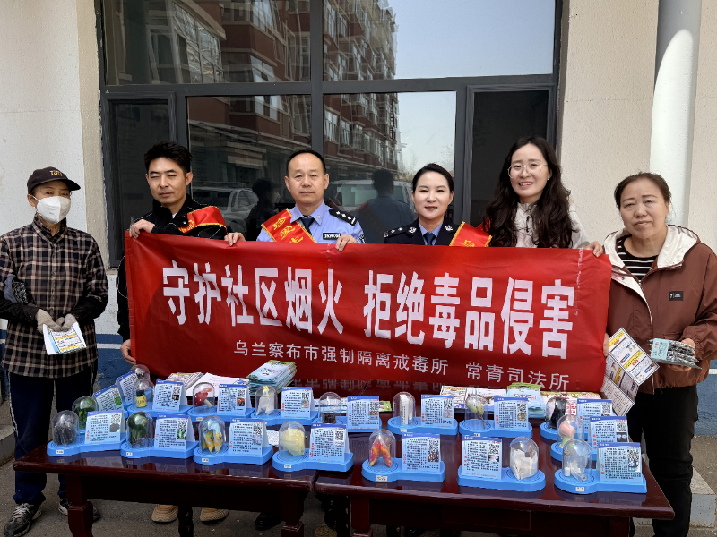 为深入推进禁毒宣传教育工作,切实提高辖区居民的禁毒意识和防范能力,守护社区和谐稳定。4月23日乌兰察布市强制隔离戒毒所联合集宁区常青司法所,走进辖区开展禁毒宣传主题活动,把禁毒知识精准传递到每一位居民心中。