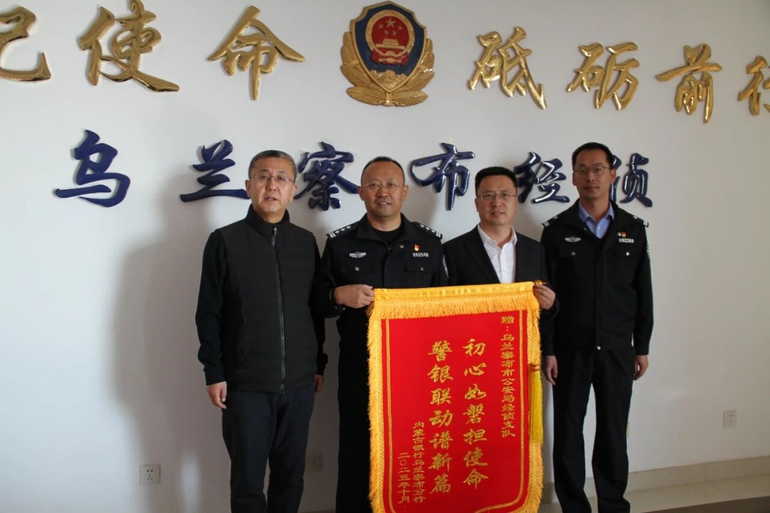 10月21日,内蒙古银行乌兰察布分行负责人一行专程赴乌兰察布市公安局经侦支队,将镌刻“初心如磐担使命,警银联动谱新篇”的锦旗赠予经侦支队,衷心感谢经侦支队在防范化解金融风险工作中给予银行的有力支撑。